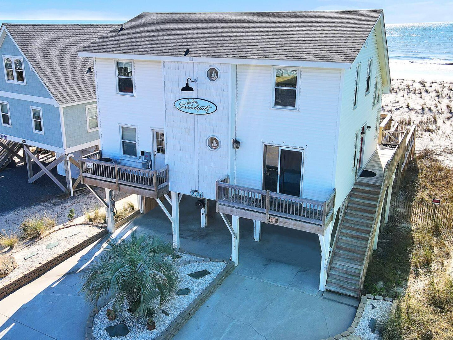 Aerial perspective of the home and surrounding beachscape